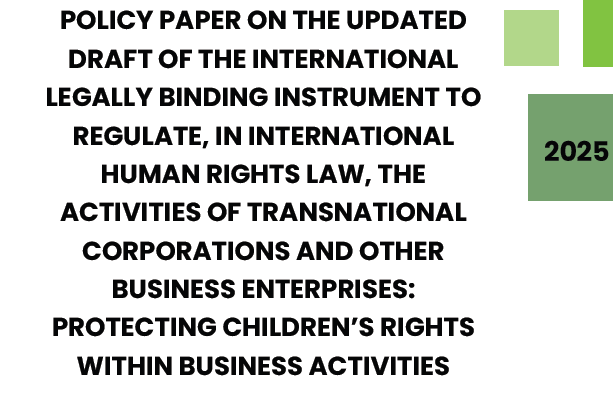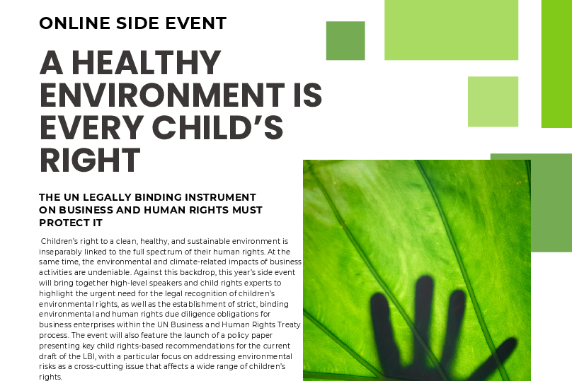 - Das Recht auf eine gesunde Umwelt ist im vorliegenden Entwurf leider wieder gestrichen worden. Dringend muss das Recht auf eine saubere, gesunde und nachhaltige Umwelt muss wieder ganz konkret benannt und in den Text aufgenommen werden. Zwischen dem Schutz der Umwelt und der Verwirklichung anderer Menschenrechte besteht ein unbestreitbarer Zusammenhang. Die Umweltzerstörung, zu der Konzerne beitragen, und die damit verbundenen negativen Auswirkungen des Klimawandels beeinträchtigen die Rechte der Kinder und gefährden die künftigen Generationen.